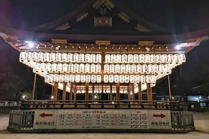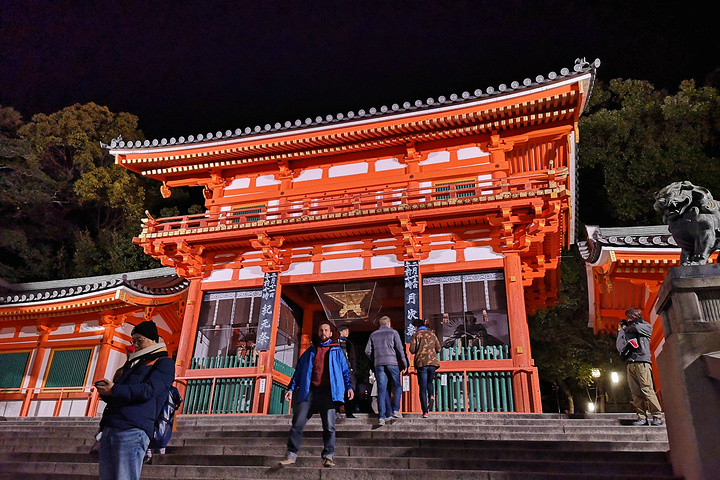 四十分钟左右的表演结束。回去的路上偶遇八坂神社。这座神社又是日本全国约三千座八坂神社之总本社。神社夜晚还开放,但基本已经没有什么游人。