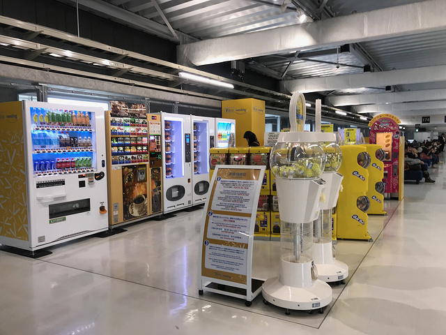 候机室里面的自动售卖机,买了些吃的填肚子