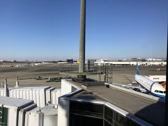 七点起床收拾准备,八点退房。退房后酒店有一个行李秤,因为廉价航空的行李票是另外买的,有重量限制,女儿的箱子超重(尽管昨天我们已经调配过),又拿出一些塞到随身的包包中。坐班车到T2的停车点下车,转机场内的巴士去T3航站楼,下了班车就看到两位年轻美女用极简英语问司机:three?女儿说:跟我们走吧。女儿领路走了大概200米的样子,到了机场巴士上车地点,排队上车,又是5分钟的车程到了T3航站楼。T3航站楼是名副其实的廉价航站楼,值机柜台排列拥挤,我们的值机柜台几乎是最里面,因为没有这方面的经验,俩人排在队伍后面,刚站好,随我们过来的两位有准确无误的找到了我们,她们不知道在哪值机,机票上没有,又让她们翻找携程的订单,终于找到,在异国能帮助国人很开心,也担心她们以后的旅程。因为日本国内多是廉价航空直飞,所以排队的人日本人居多,服务人员将我们几位国人请出另排了一队,值机也很顺利。