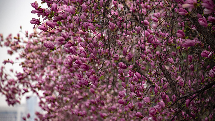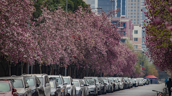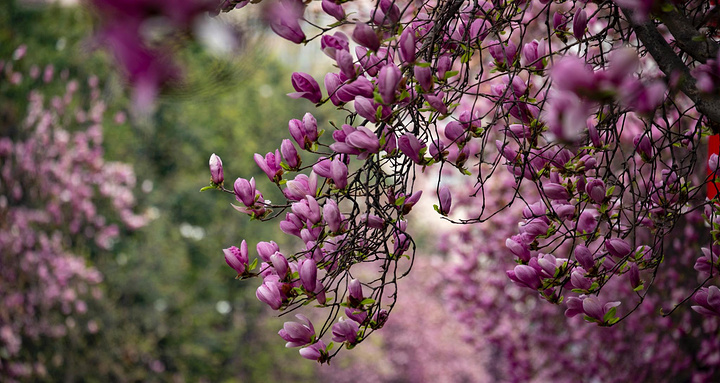 乍暖还寒的春天,傲娇的紫色玉兰花。在西安高新一路,步道上蔓延成浪漫的紫色花海大道,别有一番意境。
