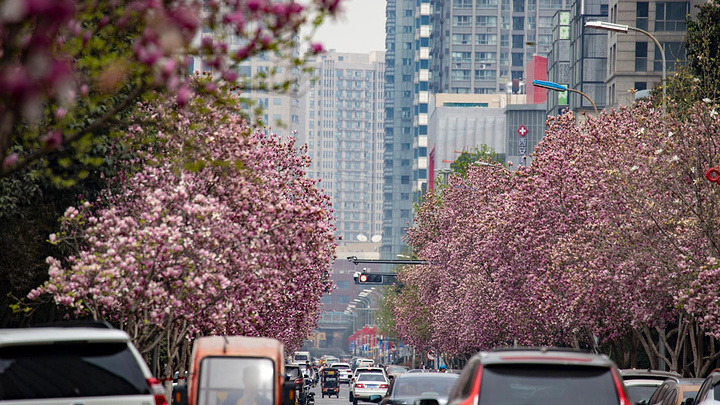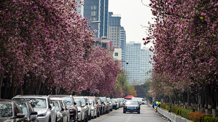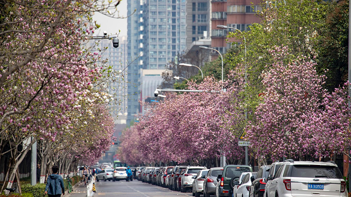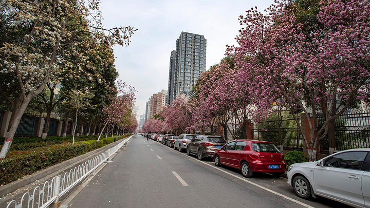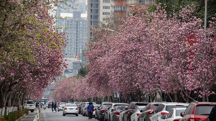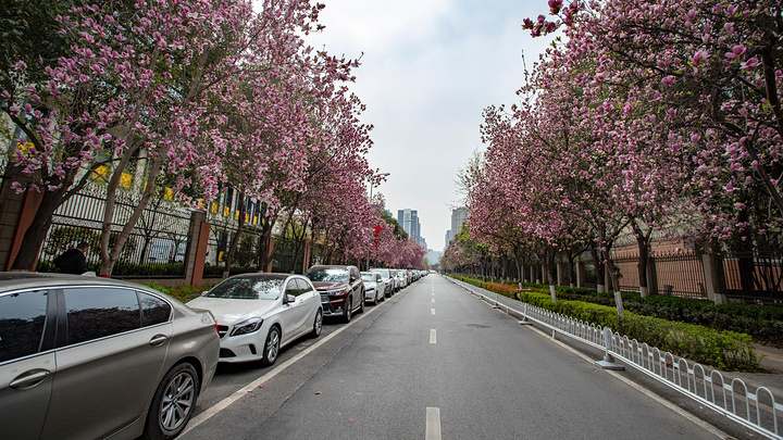 三月西安便是花的海洋,迎春花、杏花、玉兰花、油菜花等依次开发,在西安又这样一条街被誉为“玉兰花一条街”。