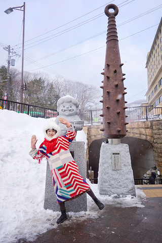 登别地狱谷是一处常年弥漫着火山气体,四处喷涌着不同种类温泉的活火山喷发遗迹,就在温泉街的尽头,藏在登别的群山里,周围空气中充满了浓烈的硫磺异味。途经地狱谷的路上把守着大大小小的鬼怪。说起鬼怪,往往总是会使人联想到恐怖的外表和狰狞的面部表情,可是日本的鬼怪却仿佛走向了另一个可以称之为“萌即正义”的极端,与基督教、佛教端庄肃穆的神明形象相比,日本的神道教衍出了一种与神怪相处的可爱自在来,令人忍俊不禁。↓