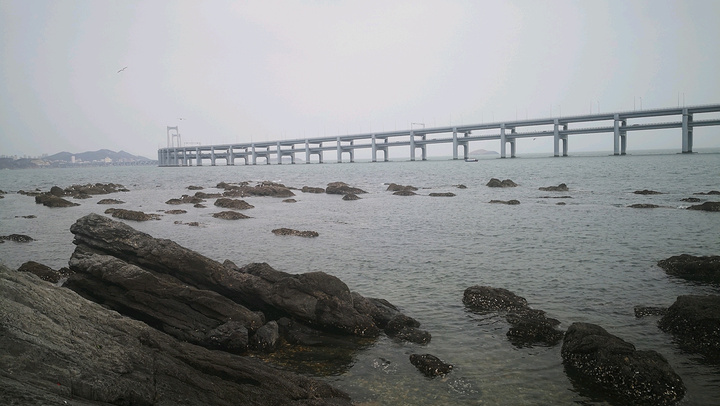 黑石礁人不多,海水清澈,配上跨海大桥,挺美,喜欢