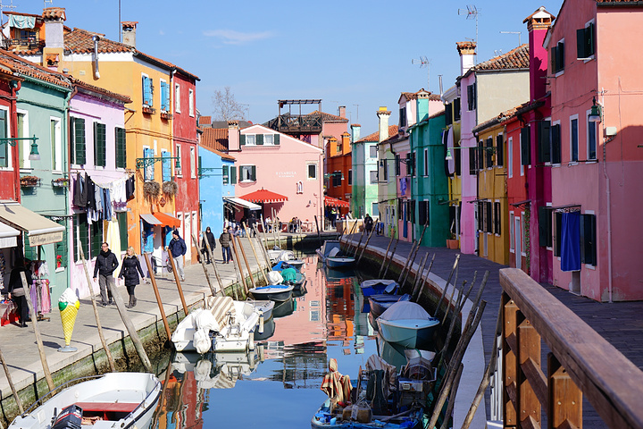 威尼斯布拉诺岛(Burano)又称为彩色岛,当地人曾以打渔为生,为了方便离家的男人能轻易找到房子,主妇将房子刷得五颜六色,色彩斑斓。这个岛充满了艺术气息,家家户户的窗户上都种满了鲜花,五彩的房屋倒映在河道中,仿佛就像进入了童话般世界。