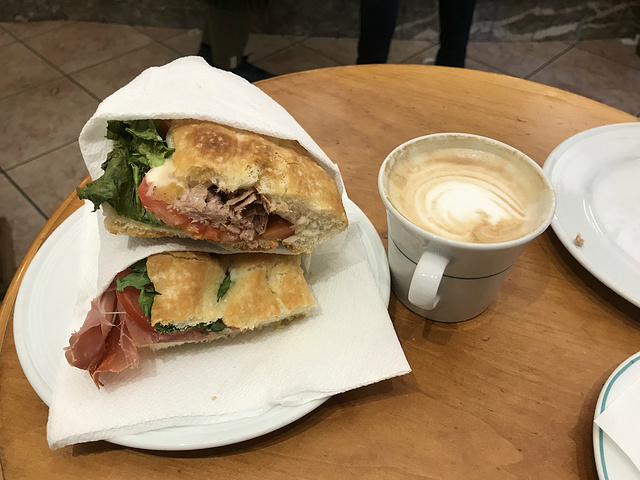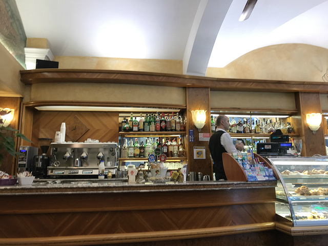到了意大利怎么不能品尝当地的美食了,况且我们的杨老师还是一个资深吃货。印象深刻的有米兰的薄饼披萨和海鲜面,佛罗伦萨的T骨牛排和意大利面,威尼斯的墨鱼面(虽然本人觉得味道不怎么样,但吃的满嘴黑乎乎的,很有趣),罗马餐厅里的提那米苏,还有每到一个城市都要去品尝当地的冰激凌(Gelato)和意式咖啡(Espresso)。