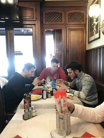 这家威尼斯餐厅是房东推荐的,没记住这里的美食,只顾去看意大利帅哥了。意大利男人确实长得帅,各种年龄层次的男士身材都保持得较好,穿着高领毛衣感觉好有味道。感觉我们有点儿花痴了。