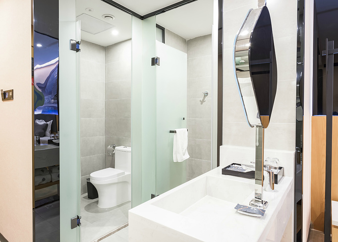 超大的室内空间、可调光的镜面、舒适的记忆枕头、可调节躺椅、五秒钟即可出的热水、进门自动打开的窗帘等,真的是让人很满意。特别是床铺面积很大,记忆枕头是亮点,睡着脖子很舒服,想必大家很少在酒店见到上记忆枕的吧?哈哈~