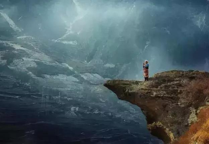脚下是几十米的悬崖,好像一阵风就能吹走。但在云端之上,古羌雕、云海雪山清晰可见。