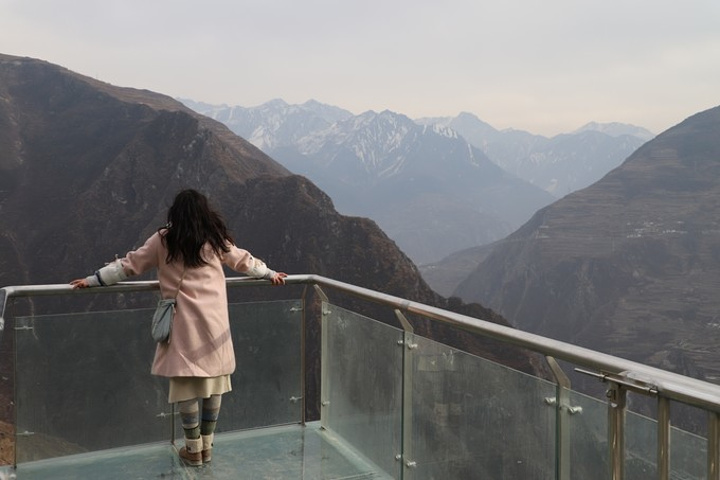 如果你不敢站在鹰嘴岩上,可以在玻璃观景台欣赏周家村古羌雕、或看那云卷云舒,好不惬意!