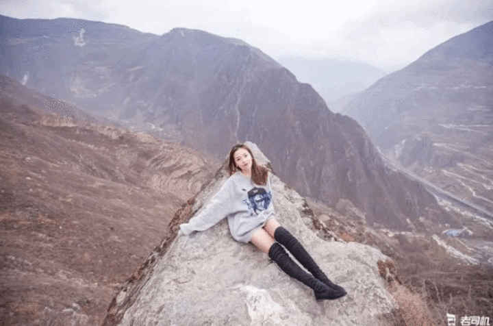 将自己和周遭山岩融为一体,小姐姐的拍照pose,大家可以学习哟~