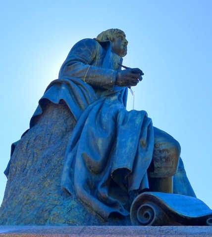 广场的中央矗立着苏格兰著名的浪漫主义诗人罗伯特•彭斯的大型雕像,这位37岁英年早逝的诗人在他短暂的一生中写出了600多首极为优美的诗歌。