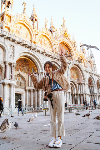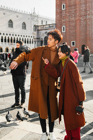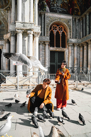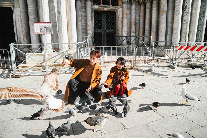 圣马可广场有很多喂鸽子的地方,张开手臂,鸽子会很乐意落在你的身上~