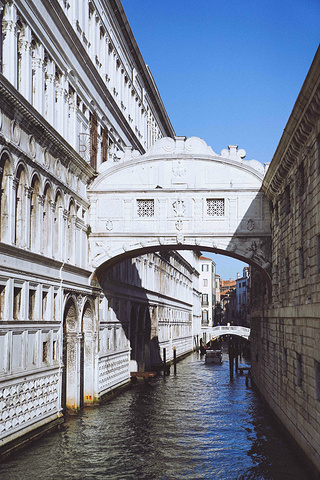 这是一座横跨于市政厅宫殿东侧与监狱之间的桥,桥下是沈沦的海水,桥的两边相对于彼岸犹如天堂与地狱,叹息桥正是连结两地的转折点。曾经在这里向世界告别的死刑犯的叹息声已经隐退在历史的角落里,如今的叹息桥已经是世人来此观光游览的地方。很多恋人来威尼斯都一定要去叹息桥下留下一个日落之吻,并许诺对方一个美好的未来~