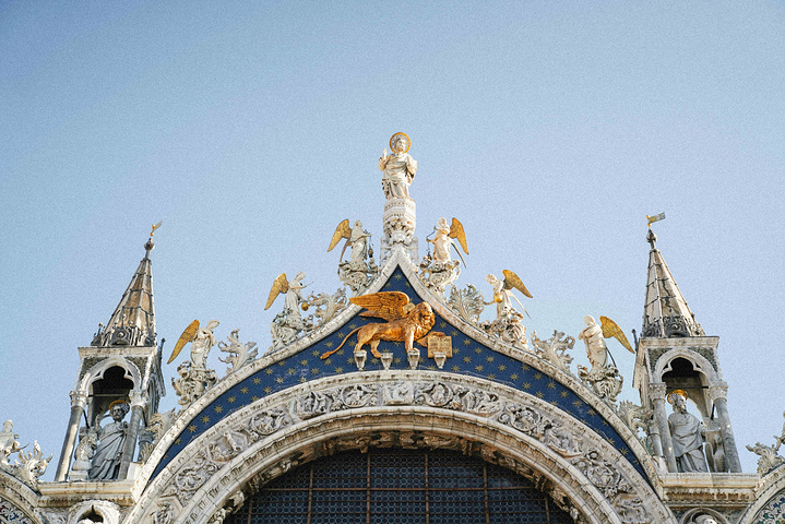 圣马可大教堂又被人们称为“金色大教堂”,据说是因为其中埋葬了耶稣门徒圣马可而得名。它曾是中世纪欧洲最大的教堂,是威尼斯人引以为傲的建筑艺术瑰宝。“圣马可”是圣经《新约·马可福音》的作者,他被威尼斯人奉为守护神,而他的专属标志,是一个带翼的狮子。