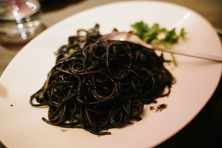 这海鲜意面里面的海鲜非常清甜肥美,而墨鱼意面的味道也很独特,最有意思的就是这面吃一口就会让你满嘴黑乎乎的,这可能就是脏脏包的兄弟“脏脏面”吧!