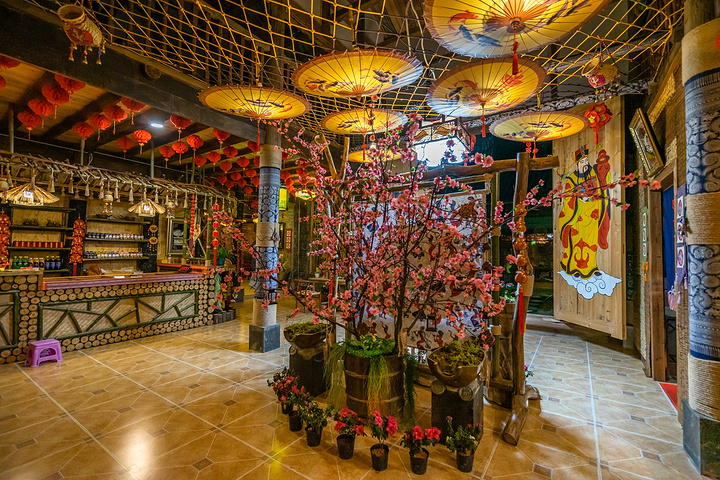 在大观园体验完篝火晚会已经比较晚了,不太推荐回县城就餐,个人为你推荐在大观园内的餐厅“阜物”。餐厅里面的装潢十分有民族特色,简直是绝无仅有!而美食方面也非常不错,其中个人极力推荐酸汤鱼和牛肉,鱼肉鲜嫩不说,味道更是酸辣适宜,连我这种不爱吃辣的人都能接受,一定要试试。
