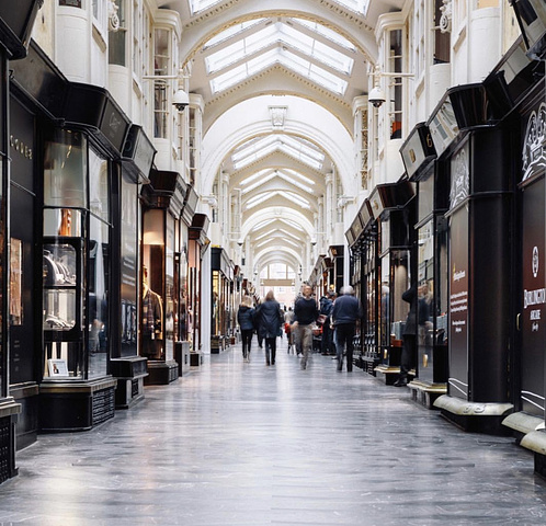 Burlington Arcade伯灵顿拱廊在17世纪时,由当时的贵族Lord George Cavendish公爵建立。是英国历史最为悠久的奢侈品购物中心,里面有超过72个世界一线奢侈品品牌,还有许多英国著名的家族式中古古董店来伦敦旅游的各位千万不要错过啦。