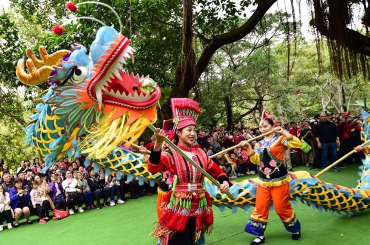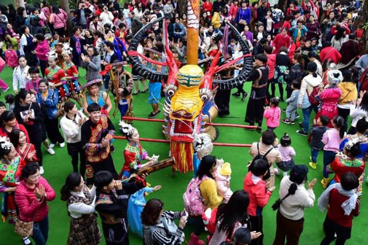 据悉,活动期间有:彝族女子舞龙、彝族拦门酒,苗族祭龙仪式、黎族竹竿舞、钻木取火、飞陀螺、抛糠包……同时,还有龙生九子的趣味拍照小品,百艺广场的绣球传情,印象中国街的吃“龙食”。