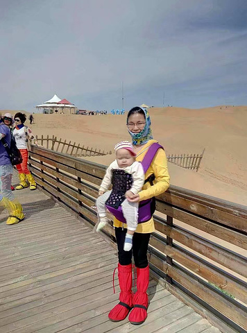 小孩半岁的时候,一家三口到 内蒙古 旅游,我们来到了响 沙湾 ,看到一眼望不到边际的沙漠,作为南方人真是第一次见,可激动了!带着孩子在沙漠中骑骆驼,庞大的动物看上去有点害怕,骑上去就没关系啦!一场关于当地嫁女二的表演,虽然是 内蒙古 的风俗习惯却表演的很有共鸣感相当感人,把我眼泪水都招惹出来了。休息处隔一小段时间就会唱歌跳舞,小孩也跟着一起摇摆,我们玩的很尽兴。其中在沙漠上滑沙算得上一项刺激的游戏,因为带着孩子的缘故,我们只是小小的尝试了一下。