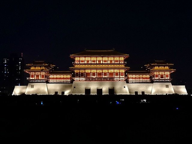 应天门就在天堂明堂对面,也是刚修好的仿古建筑,规模倒是很宏大,门口的广场真是大啊,不过灯光表演在背后,大概只有五分钟。