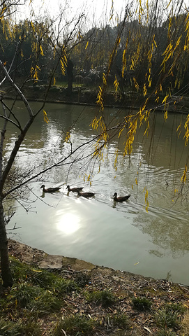 细雨中窥见周边繁花似锦,江南不像北方承德避暑山庄的凋零,这边还能看到不同颜色,还不是很冷六度左右的温度,阳光出来后景色集中一起,到处都还是生机勃勃的,草丛也很密集很长呢。水上鸭鹅成群,还有黑天鹅宝宝呢,岸边有鸽子,好想逗留久一点,如果不是头顶突然中奖——鸟粪真的掉帽子上的话o(╯□╰)o
