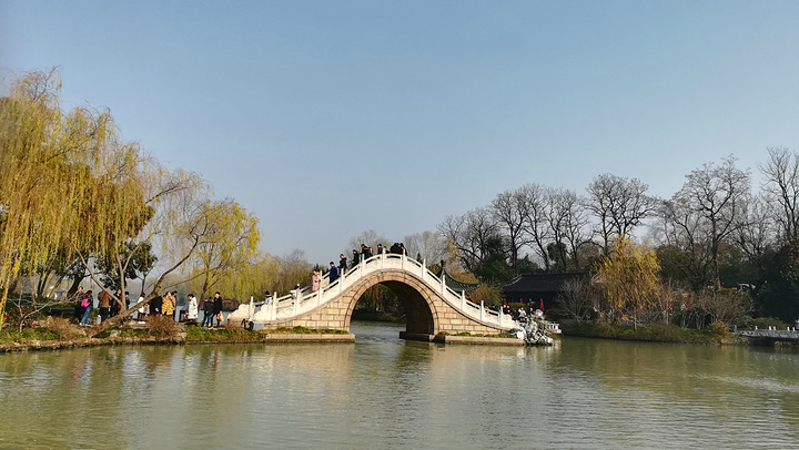 二十四桥明月夜,玉人何处教吹箫。因为这句诗记得了二十四桥,导游说其实本来瘦西湖里面不见二十四桥,到底是当年杜牧看到有二十四条桥这么多是泛指呢,还是真的有条叫二十四桥的桥已坍塌,只有古人知晓了,为了弥补大家的遗憾特意左右二十四级阶梯仿古做了一条桥。