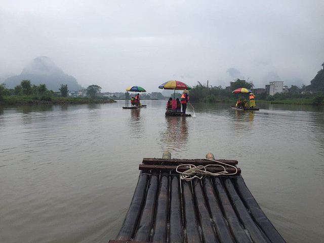 4号阳朔从早晨开始下雨,一直没停。早起后很担心能不能漂,一直拖到7点多得到消息可以漂,才从酒店出发。