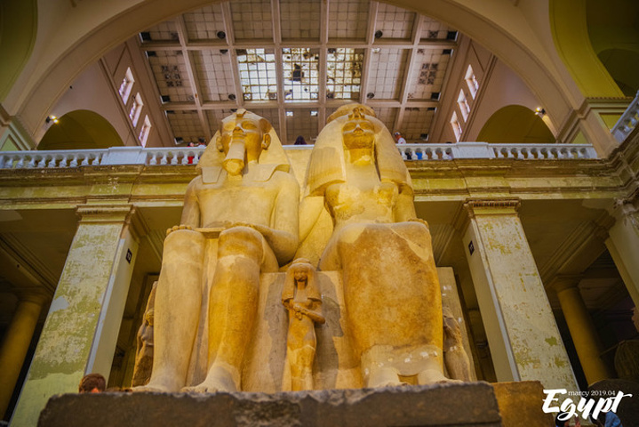 建造 埃及 博物馆的时候,是先把这两尊雕像放好后再修建的博物馆。