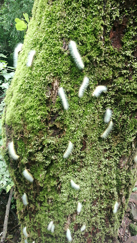 这种食树叶的绿色毛毛虫随处可见,有些滲人~