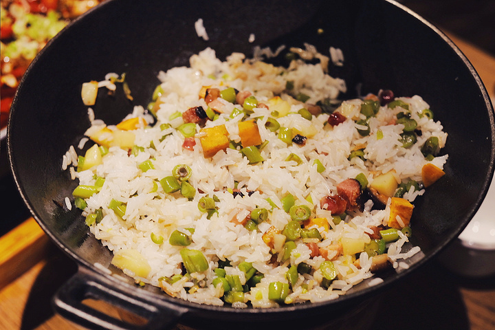 可能是因为太辣的原因,直接是遭不住,所以要了锅孔干饭,下面是食材上面是半生的饭,然后焖熟后,搅拌就可以了,很香~