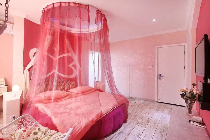 闺蜜住过一次这个房间。自己家里肯定不敢装修成这种粉色系的,也就只好通过旅行圆自己一个梦了。