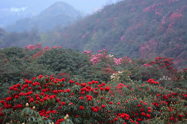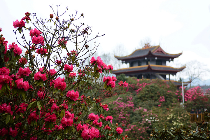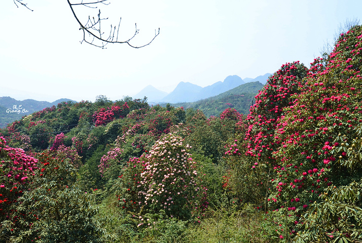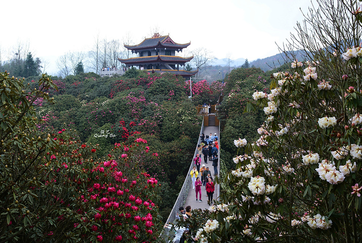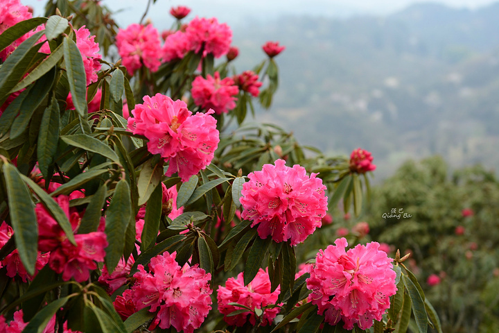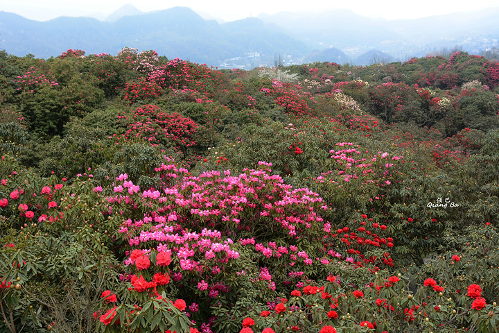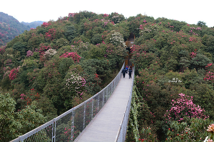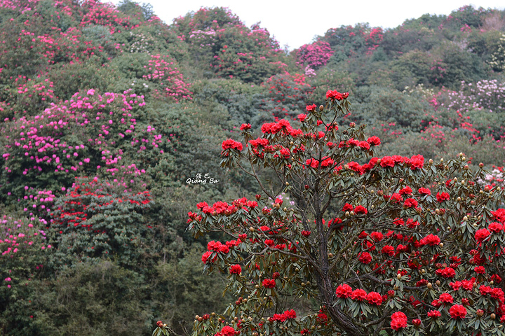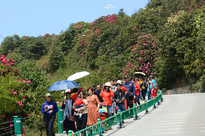 百里杜鹃,生长在海拔1700至1800米的高山上,这里有世界上杜鹃花种属5个亚属种中的全部,品种多达60多个,是至今中国已查明的面积最大品种最多的杜鹃林。我们到来的时间略显过早,一个星期后的清明节进入盛花期,看着这蜂飞蝶舞,花团锦簇的百里杜鹃,虽没到全盛期,亦觉不虚此行了。
