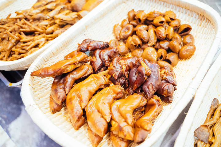 他家还有鸡爪鸭爪鸭头和猪蹄之类的卤味,卤的鲜香麻辣麻,非常入味,不得不提一下这个猪蹄的口感,软糯的肉质,满口的胶原蛋白,果冻一般Q弹