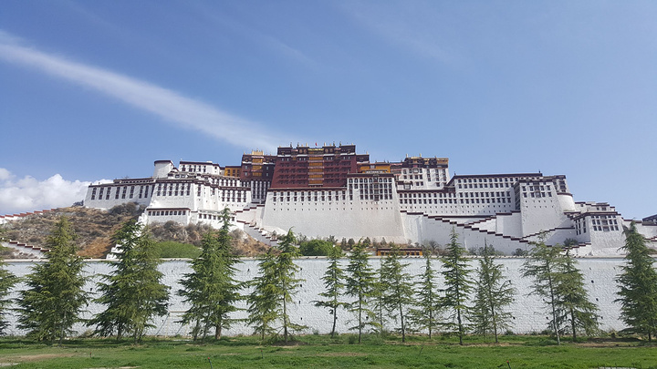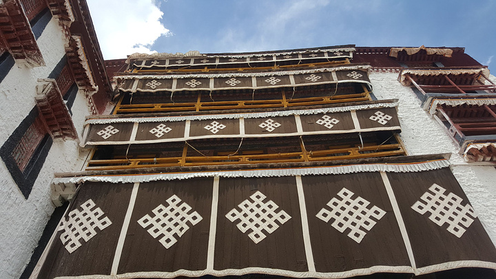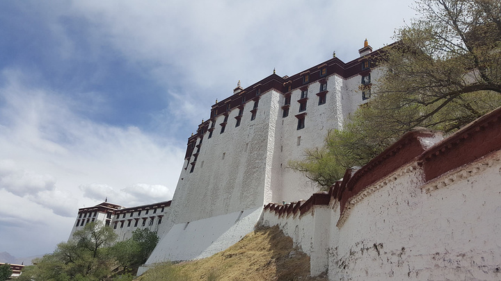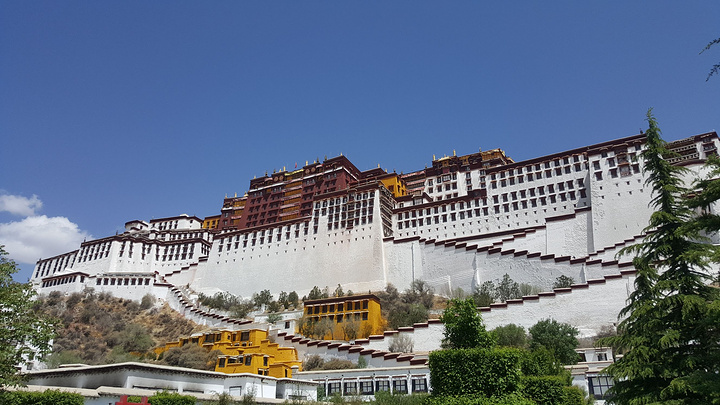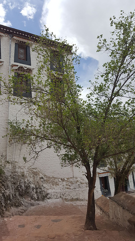 远看布宫,真的很雄伟进了门,在小广场下仰望进了第二道门,来到无字碑下。该爬阶梯了。通向布达拉宫的阶梯怎么看怎么美这个黑色的帘子是牦牛毛编织的,图案是平安的意思游览完出来了。里面不能拍照。布达拉宫上面有一颗树从背面看来自游记在拉萨漫游
