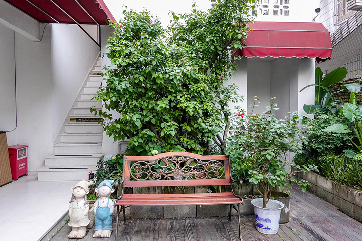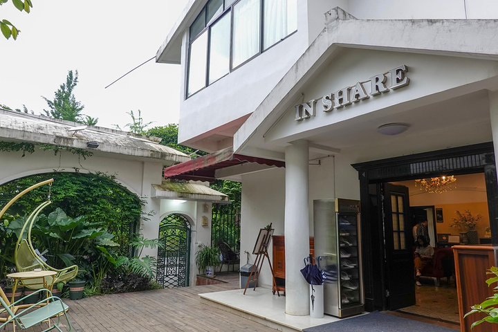 玖号别苑由一栋老房子改造而成,外面看过去白墙绿色大门配绿叶,很有隐于世的感觉。