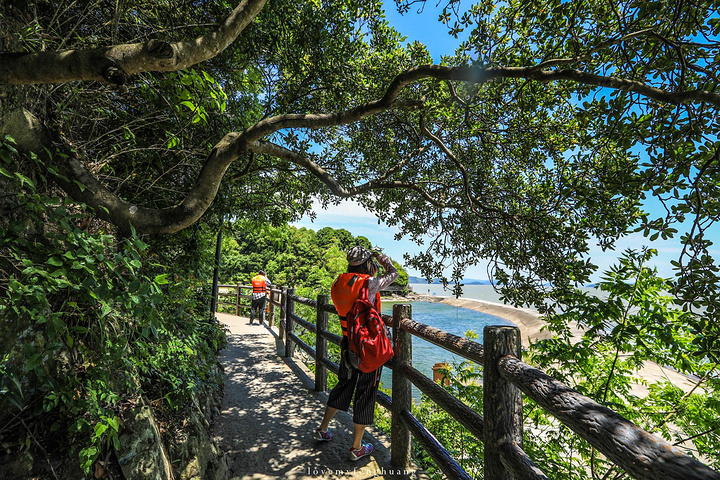 走在横山岛的沿海栈道上,清澈的海水,碧蓝的天空,海天相接,细软的沙滩,鲜有人来,这里仿佛与世隔绝,美丽的景致仿佛找到了人间仙境。