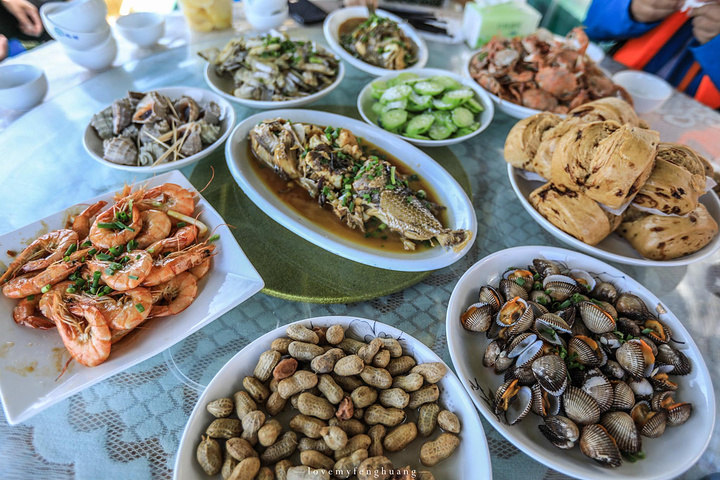 半个小时就可以逛岛一圈,回到船上,船家已经做好了丰盛的海鲜大餐,刚才打捞上来的小海蟹、海螺、海虾、蛏子....