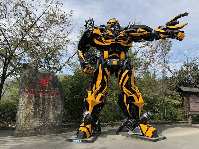我们今天选择的是自驾游,到了仙女山镇接待中心都已经快到十点整了。在游客接待中心买好了天生三桥,天坑寨子的门票后,就直接做中转车前往天生三桥了。(这里给大家备注一下,天生三桥,天坑寨子是买了门票都可以乘坐中转车的)这样一来呢,也比较方便。乘坐了十多分钟之后,我们到达了天生三桥的大门口,首先映入眼帘的就是一个大黄蜂,高大威武,非常的有气派。