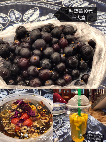 步行3分钟到客栈,放下行李走15分钟到人民路,晚上11点我们终于吃上晚餐啦,还在街边买了蓝莓(觉得是蓝莓跟葡萄的杂交品钟)、芒果茶、冰粉,桥香园的米线(吃完我们肚子有些不舒服,不明觉厉,哈哈哈哈)