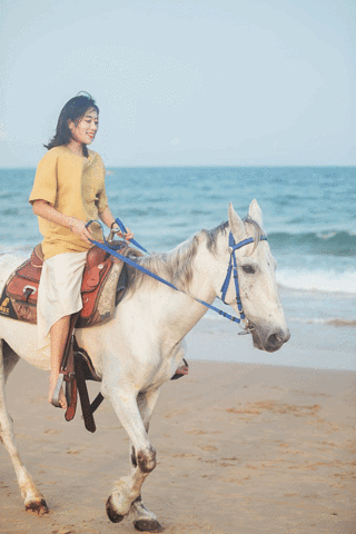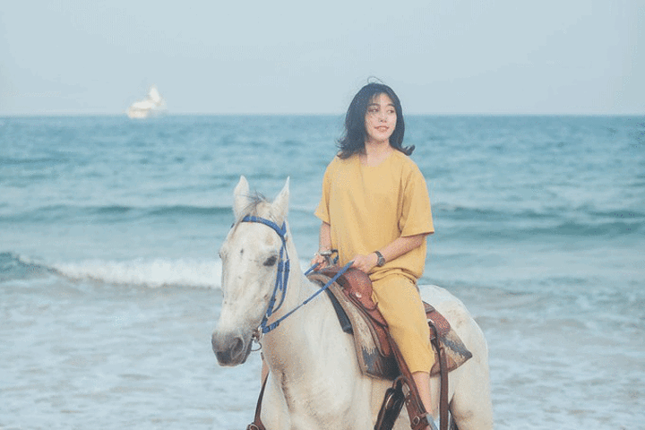 黄昏黄金时刻,海滩漫步骑马,感受日与夜的交替