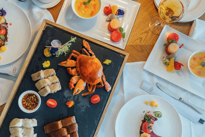 Pullman的中餐厅,印象里很清新可爱的摆盘,花草和蔬菜大多都是酒店园子里现摘现采。