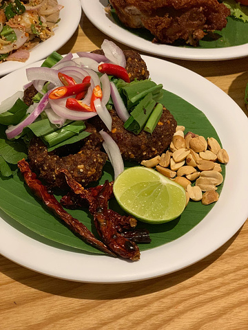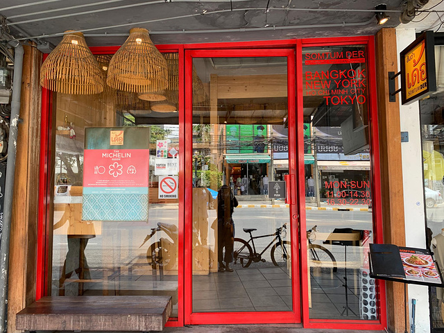 如果你逛累了Donki(唐吉柯德)商场,想要坐下来休息,或者说想要尝尝泰国本地的美食,那就来在离Donki商场不远的一家名叫Somtum Der的餐厅吃纯正的泰国东北料理吧!这家餐厅是主打泰国东北菜餐厅,这时候肯定有小伙伴要问了,泰国的美食还分南部北部的吗?那是一定的啦!我们现在在曼谷吃的料理大多都是泰国中部的料理。曼谷作为首都,融合了各地的美食,各地的美食都会有一些改良。如果想要在曼谷吃到纯正的泰国东北部料理,那么这家店一定不要错过啦!我的泰国朋友强烈推荐我一定要去这家餐厅打卡,连泰国人都这么热衷的一家餐厅,味道肯定不会差,所以在去之前我特地上大众点评搜索了一下这家餐厅,发现这家餐厅竟然是一家米其林餐厅,怪不得连泰国本地人都这么推荐。