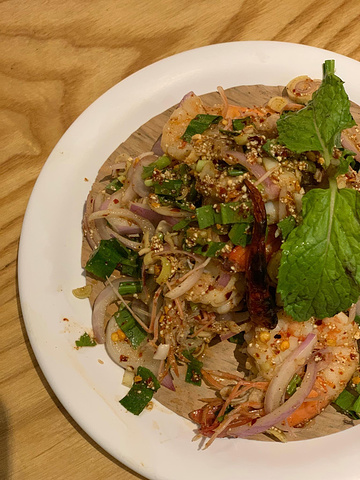 这家我最推荐的就是他们家的咸蛋黄青木瓜沙拉,爽口的青木瓜沙拉搭配上口感软糯的咸蛋黄,这两种看似相对味道混合在一起竟然感觉不到任何违和感。他们家的酸辣鸡肉汤我也是非常推荐的,汤的味道是酸酸辣辣的,非常的开胃,也非常的解腻哦。他们家的特色炸鸡也可以尝试一下,炸的酥脆的外皮包裹着鲜嫩多汁的鸡肉,再沾着泰国东北部特有的酱料,味道是真的不错哦。
