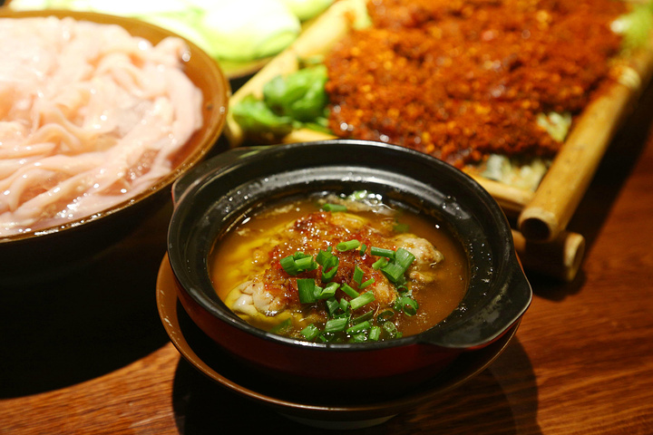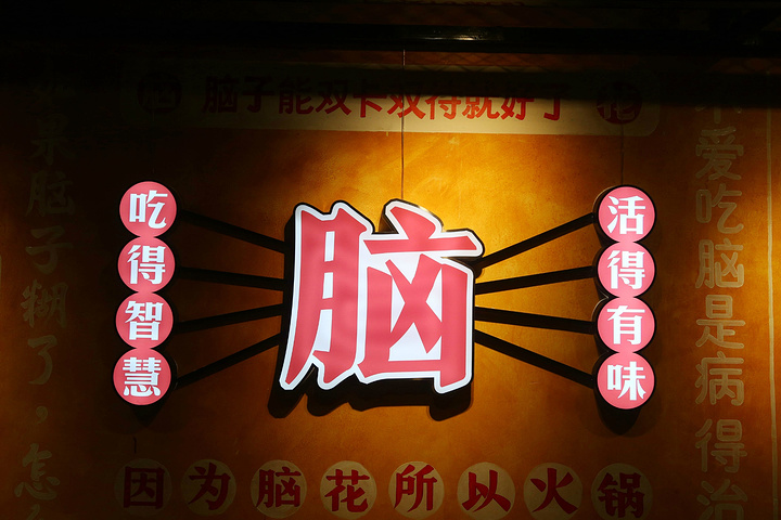 菜品:这家主打脑花,麻辣脑花,蒜蓉脑花,还有专门装脑花的月光宝盒,脑花吃起来,鲜嫩无比。腰片,很大一块,一点腥味也没有,很好吃。鹅肠:很脆,非常的好吃。毛肚:味道绝对赞,价格不高,份量很足,而且非常新鲜,很脆,每一片都很大。牛乳茶:超级好喝,味道浓浓的。