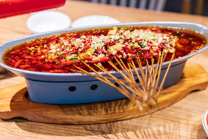 特色烤鱼片,难以想象鱼片是用串串的形式展现的,鱼片剔掉了刺,一串一片,吃起来特别,有意思。红艳艳的外观吃起来真是有点辣,但是招牌菜确实是不错。