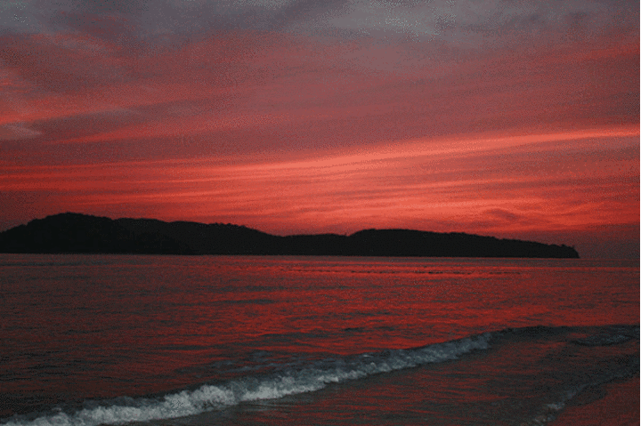 在瀑布玩完水,开车回珍南海滩。到达已是傍晚,再次看到了珍南的落日,暗红色的光晕衬托着远处的水天一线,迎接着夜晚的来临。晚饭再次饱餐一顿。