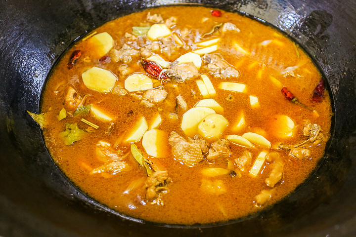 服务员先将秘制的酱料倒入锅中爆炒,弄得香气四溢。然后再倒入已经提前烧制好的土鸡,弄得我们垂涎欲滴。之后我们便开始疯狂进食,其间慢慢地添加蔬菜类的食物,个个都吃得超级满足。还真无法否认,土灶烧出来的食物,味道就是和天然气烧出来的不一样,更加醇香。