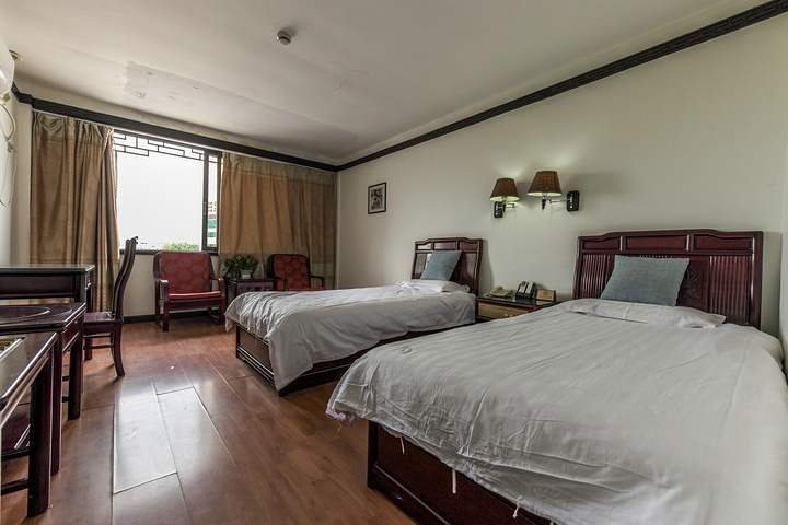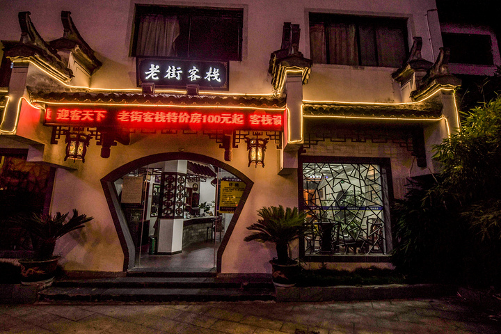 屯溪老街客栈是因为地处屯溪老街入口的位置,背后就是戴震公园,前方就是新安江城区段和黎阳老街,而且还是一家徽派建筑特色的老客栈,所以山野君就选择了这家客栈来这一次下榻的地方。大概是开业很久远加上中途又没有装修翻新的缘故,客栈整体环境很老旧、设备也非常的老化,不过基本上不影响入住和基本功能,这一点也算是难能可贵的了。绝佳的地理位置也许是屯溪老街客栈最大优势与亮点了,不需要过马路就可以到达屯溪老街门口了,非常方便。还有就是客房的观景效果非常好,站在房间内即可将屯溪老街门口与屯溪老大桥交汇的地方尽收眼底,夕阳西下的时候,整个景色美的令人震撼。如果能够接受设备较老的老客栈的话,但是又希望找到一个绝佳的地理位置和最亲民的价格的话,那么屯溪老街客栈绝对是很好的选择了,这一次入住的屯溪老街客栈除了硬件设施不太满意之外,其余的都非常赞。建议客栈管理者将客栈翻新一下还是非常有市场前景,总而言之屯溪老街客栈还是比较值得的入住的。