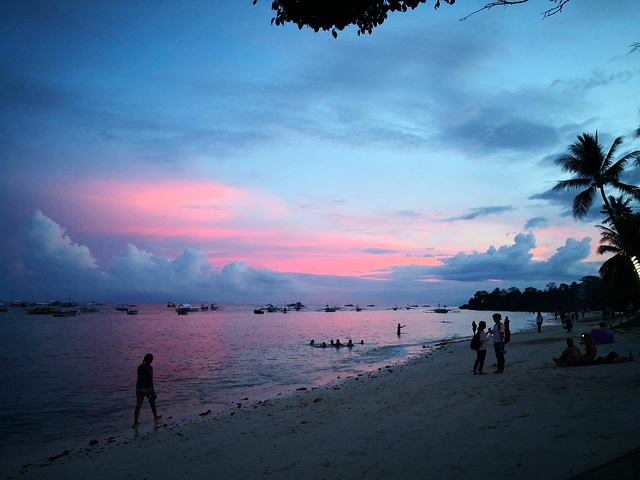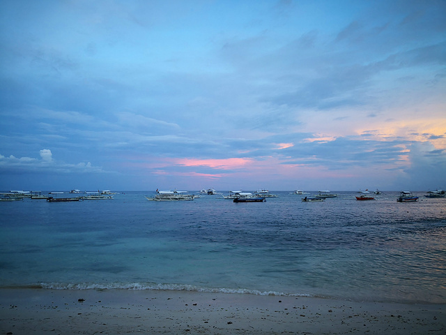 DAY 1 从机场出来打的士回去ALONA 200P,如果坐空调巴士50P就可以到ALONA。入住卡祖德200(有时候在网上订有优惠,优惠后150,网上无房也不代表无房)中立地说这个民宿这样的价格设施环境还算划算的,也是在汉娜公路的对面+王者潜水店对面。满室淡蓝色的墙及蓝色图案的窗帘床单。浴室的设计很简单,浴室用淡盐水,我喜欢有公共走廊有向里凹的阳台晾衣服可以坐着就可以看日出(隔壁再隔壁有个智障住客在阳台跟菲律宾阿姨摸摸摸还装不经意露小鸟*2次,这个也导致我们入住立刻想要搬)。这个的店的WIFI还算稳定,但是电话网络就差。其实我开始就是想住CASA MANNI及那个我忘记名字的园林民宿不过我们入住当日他们都没有房间。为什么我没有网上预定呢?因为这两个民宿其实都不在大网站订到,而我之前去的时候通常都有房+还在纠结住悬崖边上的Amira. 入住后睡醒后去看日落。日落很漂亮。看完日落报个团明天出海。路边很多拉客的,给个定金拍个证件及人照。我觉得目前还好,人家也不至于为了逃我这单不混了。人多及下雨都可以讲讲价格,报了6点海豚团,两人参团每人1000P(包括跳岛船费,巴里卡萨的上岛费,潜水面罩)(最好自己自带潜水的那种薄鞋迪卡侬有售24.9)租摩托,350P一日压身份证。