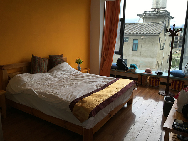 我们在双廊入住的是大理双廊静园客栈,位置在双廊镇大建旁村本主庙附近,客栈附近也是小吃一条街~( T___T )说实在的,我真的不是故意的~~真的是在去哪儿app查找,然后看评价才订的,哈哈,老板也很好讲,出来接我们,还帮我提行李~~房间有大大的落地窗~所以感觉光线很好~~我们订的是观景海大床房,但说实在的真的没看到海景啊~~~不过其他很不错~~一晚238元,平均每人119rmb,也还好~~~